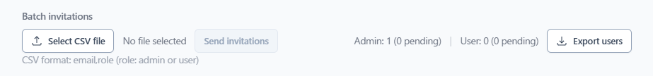You can check the current member breakdown (Admin / User) as well as the number of users with pending invitations for each role.